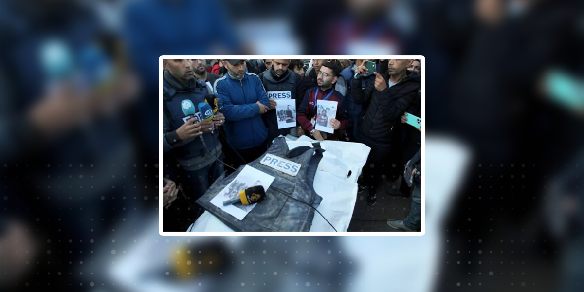 وأشار البيان إلى استشهاد عائلات الصحفيين حمزة المقيد ودعاء الباز وعبد القادر صباح وانس الشريف ومحمود اللوح ووائل الدحدوح ومعتز العزايزة.