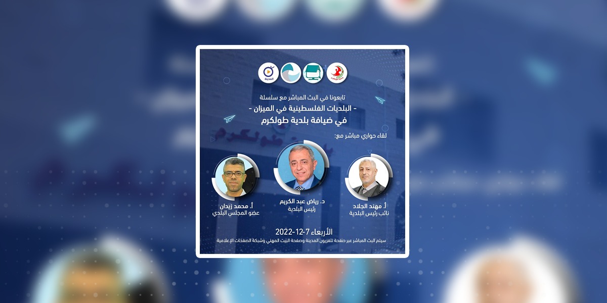 وهذه الحلقة الأولى التي يتضمنها المشروع ضمن أربع حلقات تلفزيونية نقاشية سيتم تصويرها وبثها مباشر تباعا عبر تلفزيون المدينة وتضم بلدية البيرة، وبلدية الخليل، وبلدية نابلس، إضافة لبلدية طولكرم، وهي من البلديات المركزية في الضفة الغربية.